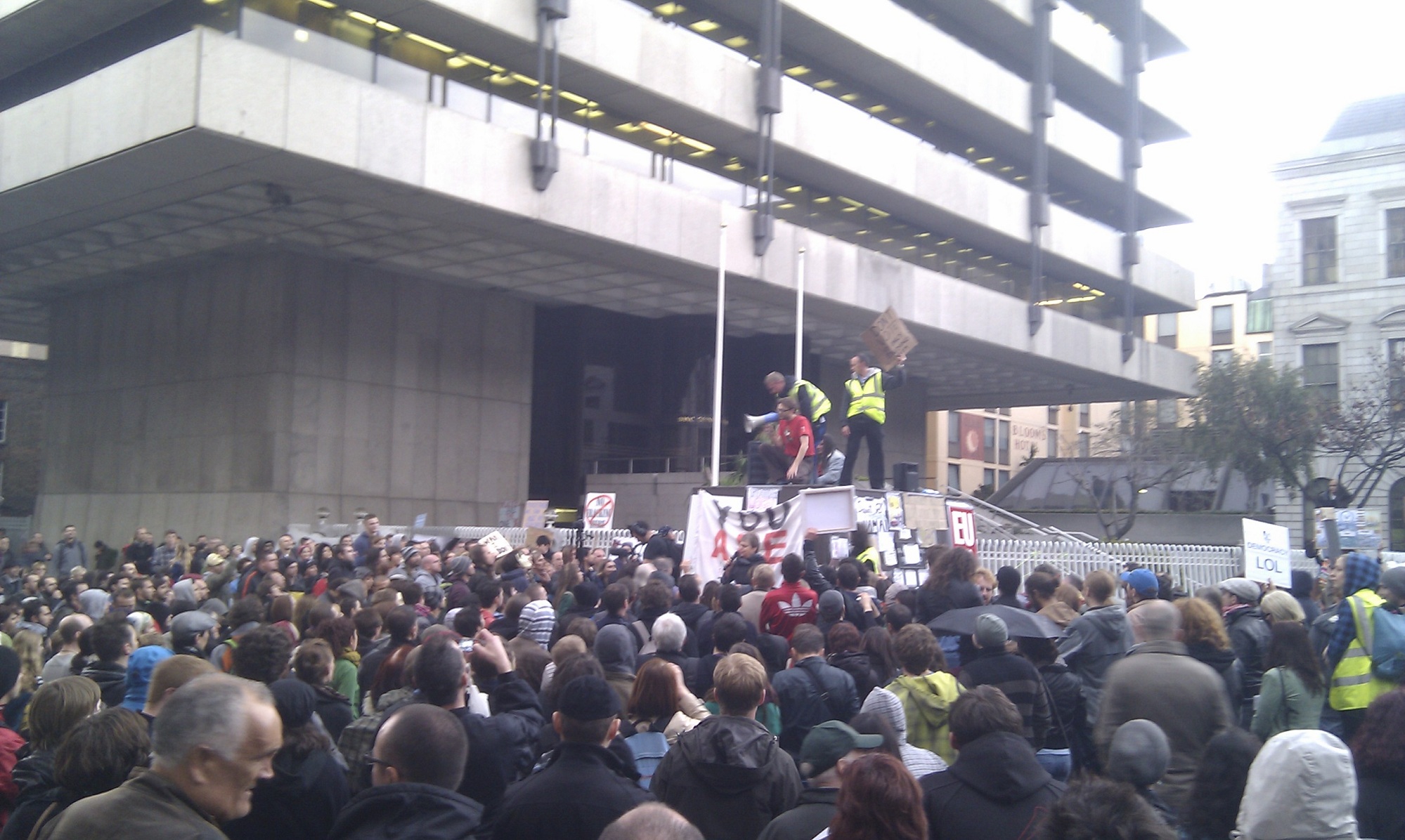 At this Tuesday’s assembly Real Democracy Now Ireland invited some members of #OccupyDameStreet to our weekly assembly. We agreed to march on Saturday 15th October to Dame Street, and not Jervis Square.