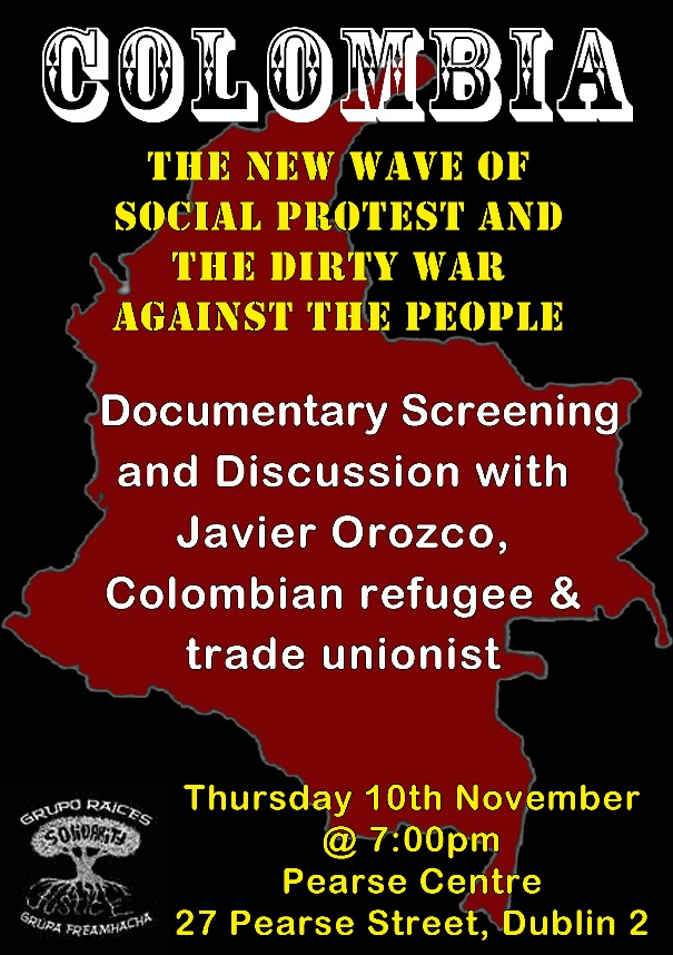 Dublin - Event Notice Thursday January 01 1970 Colombia: the new wave of social protest and the dirty war against the people