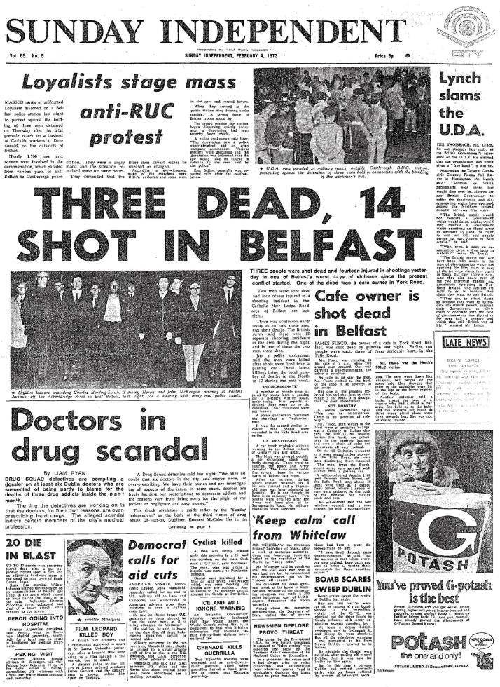 CLICK TO READ - Sunday Independent Feb 2, 1973 - how the paper used to cover the news - today the tiny 'provos' story at the bottom of the page would be front and centre with 29 pages of 'analysis'. Stories about northern nationalists and the UDA would n