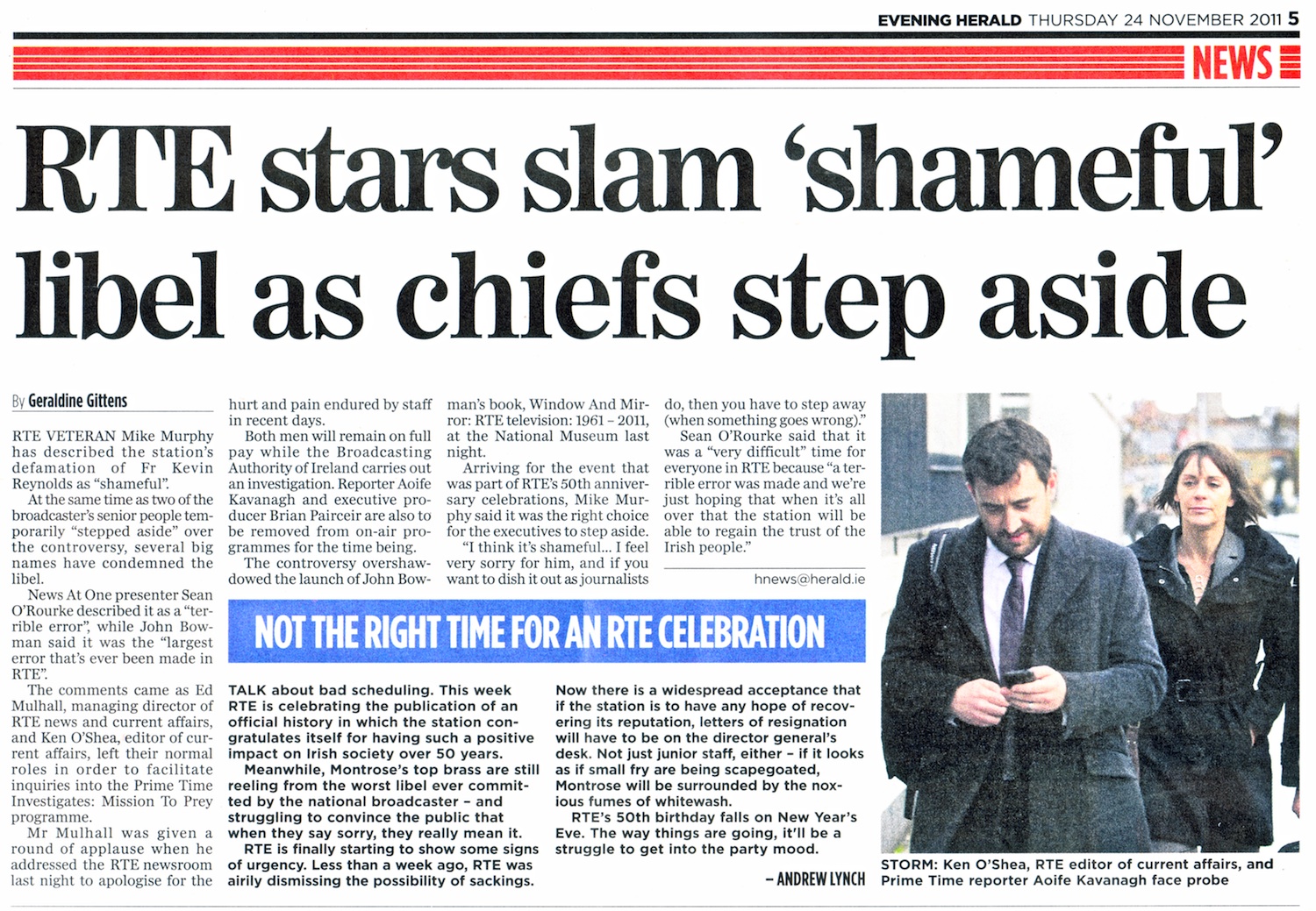 'Not the reporter Aoife Kavanagh, the executive producer, Brian Parceir or the Prime Time editor, Ken O'Shea. And that's how it should be.... the buck stops with Ed Mulhall, RTE's Head of News and Current Affairs......