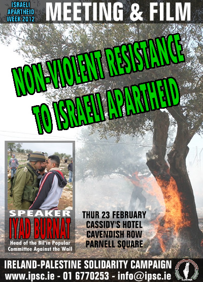 This event is organised by the Ireland-Palestine Solidarity Campaign (IPSC) as one of a series of events taking place around Ireland during international Israeli Apartheid Week 2012 (20 – 27 February).