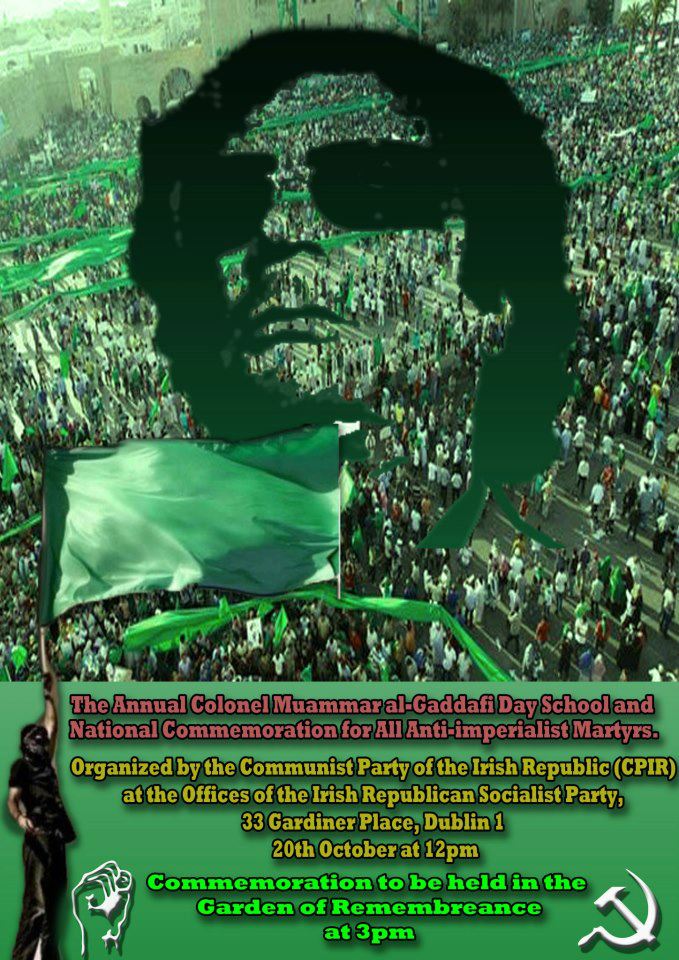 We hardly need to go into the huge support Al Gaddafi gave to freedom struggles, from Ireland, to the Philippians, to Palestine, to the Basque Country, etc. etc.