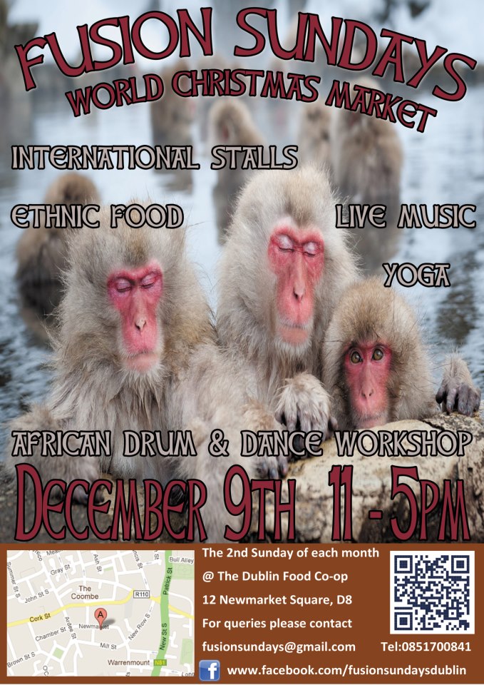 Being Dublin’s only ethnic Bazaar Fusion Sundays is a rather cultural experience with a huge array of International stalls, ethnic food, live music and entertainment for kids... We will celebrate the different Christmas traditions at over 30 stalls from around the world. There will also be a Laughteryoga session, African Dancing and several other workshops running throughout the day…