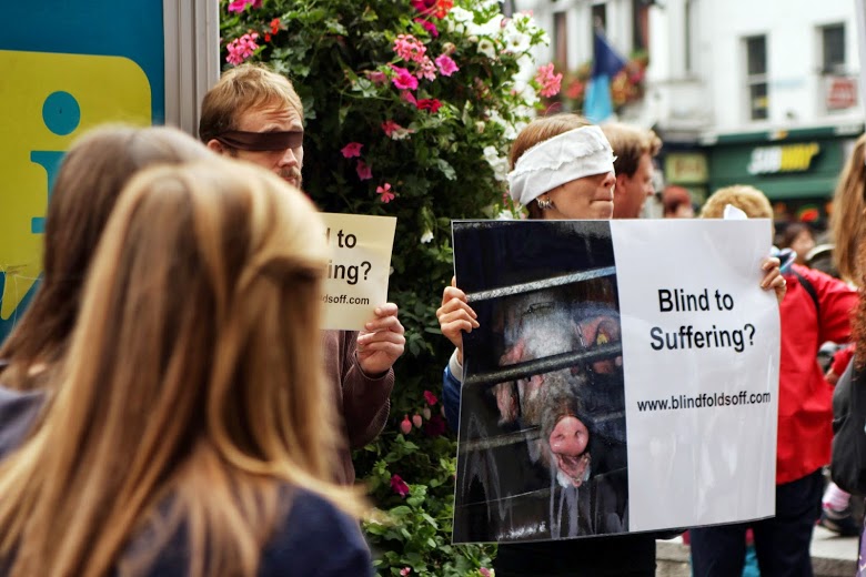 The event called people to take their blindfolds off to animal suffering and the human toll dairy and meat has.