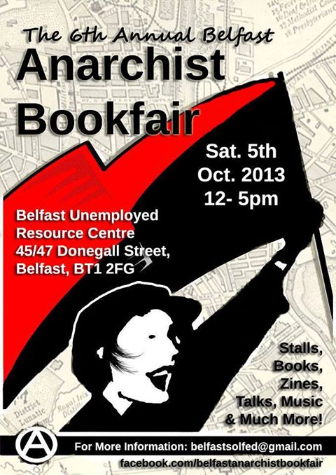 Not to be missed - the 2013 in Belfast Anarchist Bookfair on Sat Oct 5th from 12pm - 5pm