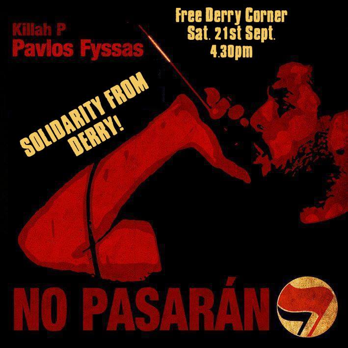 'Pavlos Fyssas, son of a metal worker and a trade unionist, was an active anti-fascist hip-hop MC. He was 34 years old when on Wednesday, 18th Sept he was killed by Golden Dawn fascists.'
