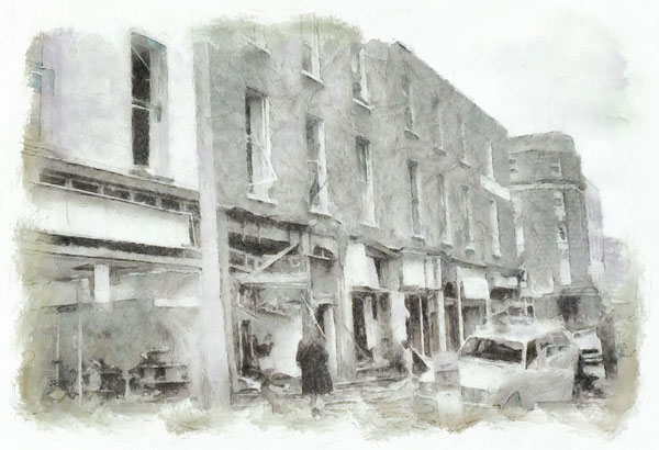Some of the devastation on Parnell Street in 1974, outside The Welcome Inn