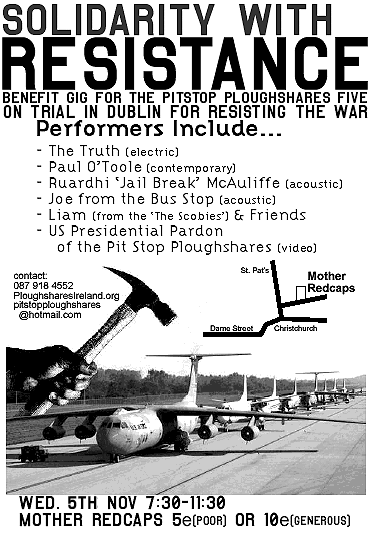 Sunday November 02, 2003 17:51 by Pitstop Ploughshares - Pitstop Ploughshares pitstopplougshares at yahoo dot co dot uk 086 151 2013