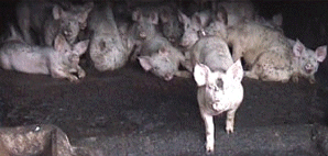 So you're a farmer, Lone Gunman? What kind of farm do you and your family have? Is it a modern pig farm, perhaps? Does it consist of half a dozen vast sheds, each divided into row after row of 10ft. square, bare, concrete pens, each crammed with as many pigs as possible? Do you keep the shed dark except for feeding times (it keeps them quieter, doesn't it, Lone Gunman?)? Do you add antibiotics or even anti-depressents to the feed, to cut down on 'wastage' and increase the survival rate and meat yield? Disease does seem to spread in those conditions, doesn't it?
