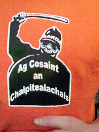 It was probably one of the best demos that I attended. A moment that stands out in my mind is when the protestors moved away from the tank and proceeded towards Shannon Town Centre. Within a couple of minutes a US military aircraft was coming in to land. What was a noisy protest quickly descended into an eerie silence. For the next few minutes the protestors and gardai stood in silence while watching the military airplane land. The scary reality of why we were there became all too obvious.