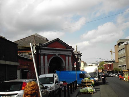Dublin City Council's Wholesale Fruit and Vegetable Market Building is located at Mary's Abbey, which is the continuation of Abbey Street west of Capel Street. You can see it on your left as you are on the LUAS on the way out to Tallaght. It is a listed building, and was built in 1892. It is considered an architectural 'jewel' on the northside of the city, with its red and beige brick, arches, pillars and distinctive features. At the moment most of the fruit & veg that comes into the country is collated here by wholesalers, strapped onto pallets, and then delivered by truck to different parts of the country. Night owls passing through the district early in the a.m. are often astounded by the amount of activity, with forklifts, pallet trucks, and even horse & carts shunting and packing all sorts of food. This is repeated daily, and the activity usually dies down mid-morning. The area could be considered a "primary industry" zone, with numerous warehouses surrounding the central core of the Market Building.