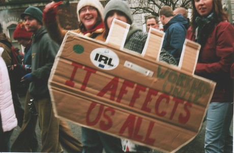Labour's slogan "Partnership not Piracy" was against my beliefs and that of my union and is certainly something I'm querying with the party - but what was far more significant yesterday was the combined power of the wider movement. The Labour Party had a fantastic turnout with many members and activists marching under their union banners as well as with the party - as did many other parties and groups. Something in the region of 150,000 workers came out onto the streets yesterday. If workers are able to recruit and extend unions further we will be in a much better tactical position, as well as having the massive ideological weight behind us, to oppose the partnership model which fails working people and those who are disadvantaged.