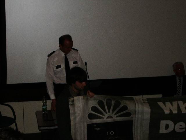 Fair Play to Hugh Orde who obviously persisted in making his contribution to the debate. Debate is what happens in democracy, where people of different opinions and outlooks are allowed to express themselves. I suppose OSF thought that they would completely disrupt the debate with their action? Fair Play to Orde for ignoring them and continuing to speak. Just goes to show that for all their guff SF still dont know what democracy is.