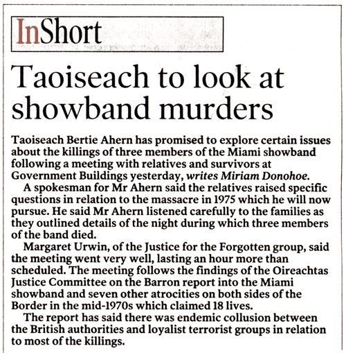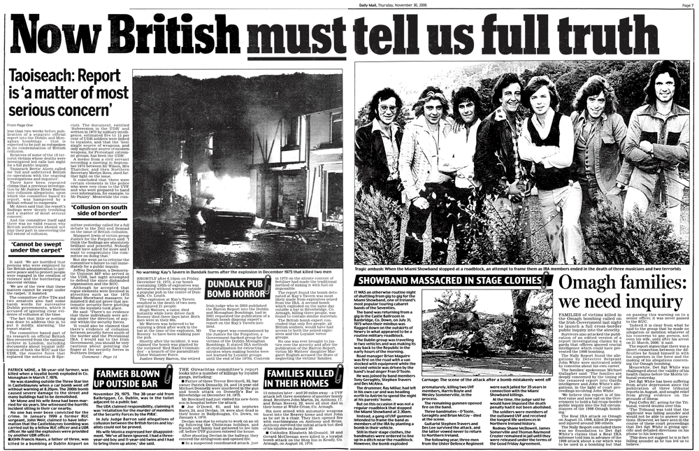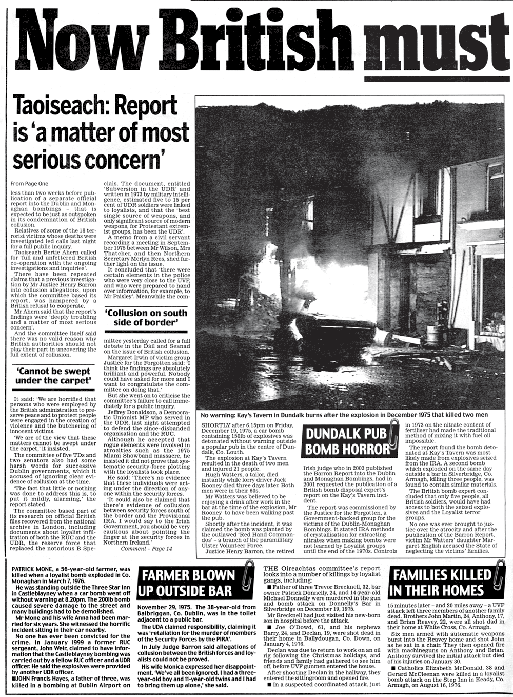 In relation specifically to the Dublin- Monaghan bombings the Irish Times'