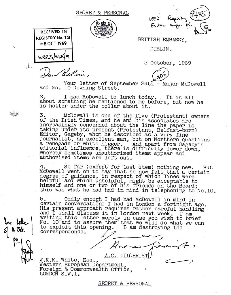 It is a cut version of the letter published in the Irish Times on December 2nd – printed higher up this page.