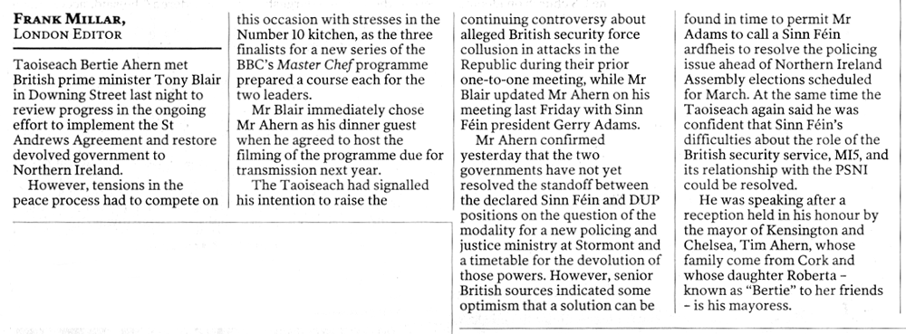 In short, this is not the sort of story the Irish Times would want to upset its readers with (Dec 1st 06)
