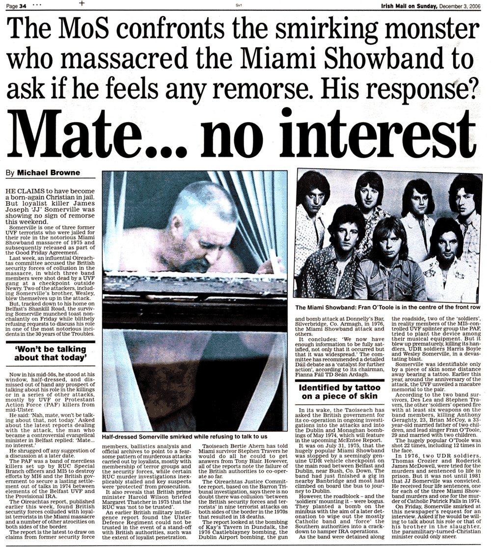 I and many other musicians were deeply saddened but not surprised by the Miami Showband massacre of July 30th, 1975. - Yours, etc,