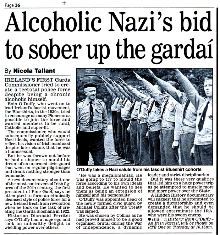 Mail story on Fine Gael and Blueshirt founder, and first Garda Commissioner, Eoin O'Duffy