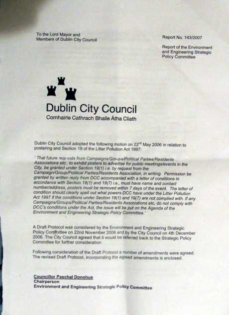 Motion on Poster Ban passed at DCC http://www.indymedia.ie/article/76227