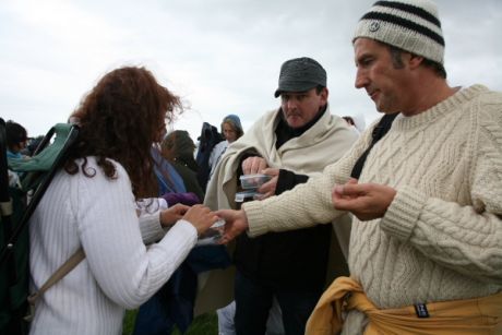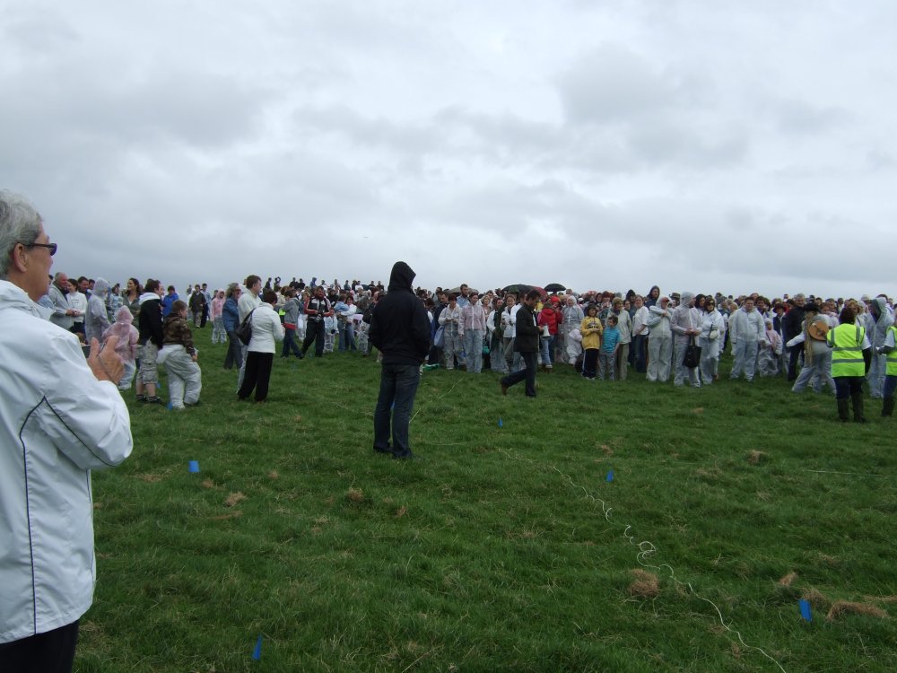 It was magical, yes, driving up to Tara and getting stuck in an unforgiving traffic jam, to photograph a very special moment where over 1500 gathered to tell John Gormley and Bertie Ahern, to reroute the M3. The event was to start at 3pm, but hundreds were there 2 hours in advance. French, English, Irish and other unknown tongues wafted in the flurry of excitement as people examined their tickets discussing which letter in the living protest they would be. One child's birthday present was participating in the living sculpture.