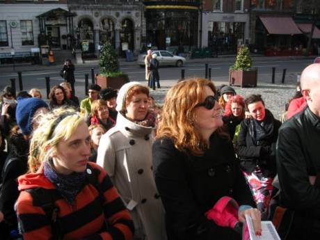 The tour guides for the day were Carol Hunt – a history graduate and veteran tour guide – and Sinead Ahern, one of Choice Ireland’s finest spokespeople. Carol joked that she used to run a women’s history walking tour around Dublin, but that it was often not that well attended by men – until she changed the tour’s name to “A Sexual History of Dublin.” Same tour – different name – far better male attendance!