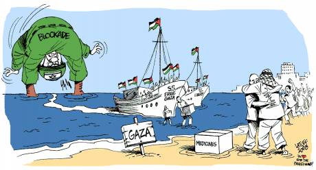 Cartoon by the Brazilian artist; Carlos Latuff Two small boats, 42 determined human rights workers, one simple message: “The world has not forgotten the people of this land. Today, we are all from Gaza.”