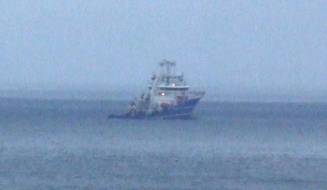 The Bibby Topaz in Broadhaven Bay looking for the Solitaire's tail