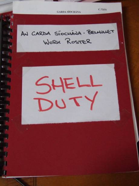The 'Shell Duty' work roster for sign-up at Belmullet Garda Station. (pic by arrestee)