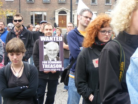 Here Grainne Griffin took the microphone to explain exactly who Johnny Ronan is. Along with Richard Barrett, whose own mansion is located close to the ‘purple palace’, Ronan owns a company called Treasury Holdings. This company is now one of the so-called NAMA companies, owing a number of private banks somewhere in the region of €1000,000,000.