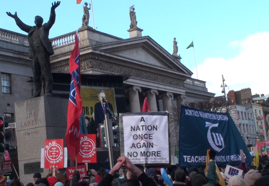 The Left initiative at the O'Connell monument was also well worth doing. I estimate that between 3000 and 5000 people listened to a very different message to one that was delivered on the main stage. Again it marks an escalation in the fight back. What is needed now is a series of protests across the country building towards a general strike and a mass campaign of civil disobediance. Building a campaign of this type will take time but it can be done.