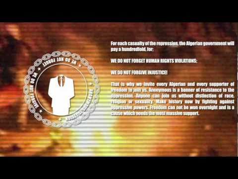 - Anonymous Press Release A Warning Message to the Algerian Government (video) >> http://goo.gl/cyUMH // #anonops