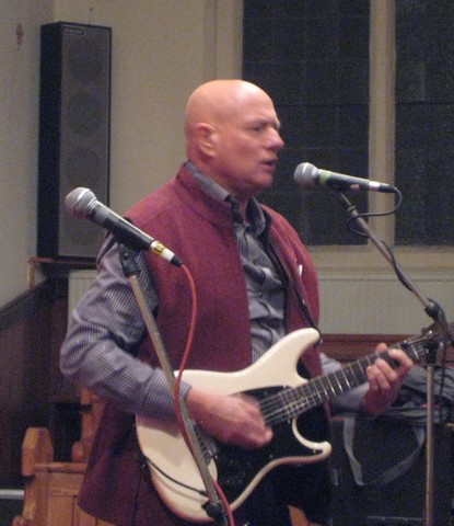 Stephen Hancock reflected on the night the war began as he was banged up in his prison cell. He was touched by the sensitivity and empathy shown to him by other pisoners 20 years ago as the war began, expressions of gentle solidarity that have stayed with him to this day. He read a poem "Work to Do" by the recently departed Adrian Mitchell, written after the big anti-war potest of 1991 Rod Boucher then unleashed a banshee wail of electric guitar that again raised the tempo. http://goodgodstudio.com/page72.html