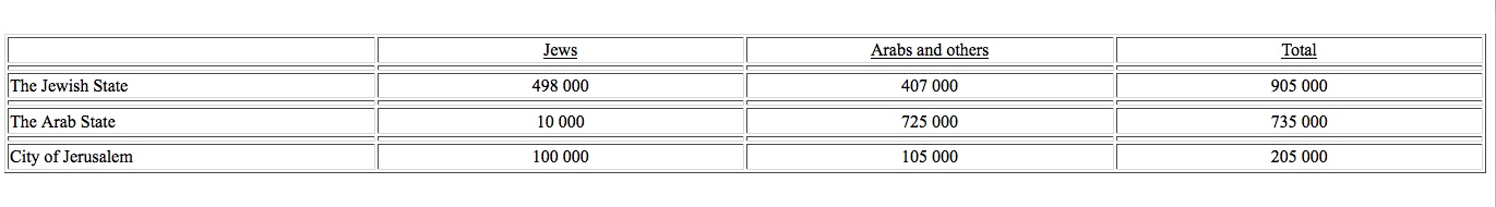 The second grahic, a table, shows the population of the two states that the UN proposed to create by partitioning Palestine - against the will of most of its people - in 1947. Despite large-scale Jewish immigration into Palestine under the British Mandate - again, against the will of a large majority of its existing population - Palestinian Arabs still comprised about two-thirds of the population of Palestine.